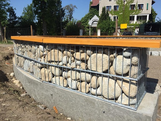 Siedziska wykonane zostały z wykorzystaniem koszy gabionowych. Teren wokół paleniska wykonany został z nawierzchni mineralno-żywicznej. Same palenisko wypełnione jest kostką kamienną.