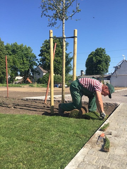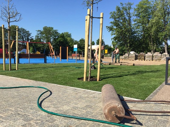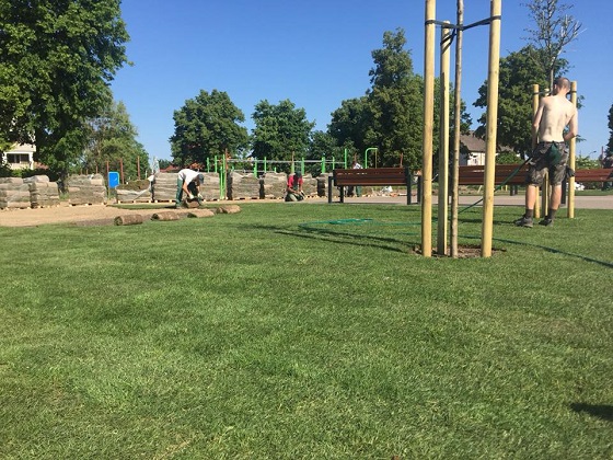 Właśnie trwa układanie pierwszej dostawy ponad 900 m2 trawy z rolki.