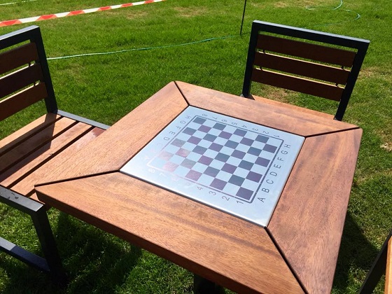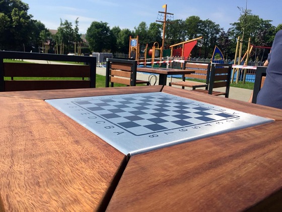 Na zdjęciach strefa odpoczynku ze stołami do gry w szachy oraz krzesłami. Producentem jest znana firma Puczyński - mała architektura, która na rynku istniej od 1978 r.