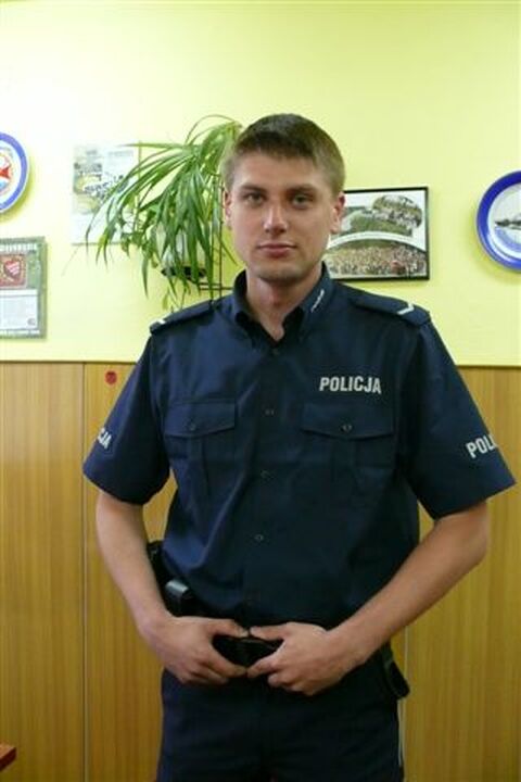 Na zdjęciu w nowym mundurze widzimy sierżanta Janusza Kasperka. Ma 29 lat, jest żonaty i ma syna. W Policji pracuje ponad 5 lat, a dzielnicowym jest od 2,5 roku Jego dzielnica to m.in.: osiedle Wyspiańskiego, al. Wojska Polskiego, część zachodnia ulic M.C. Skłodowskiej i Powstańców Warszawskich (do ul. Morskiej). Gdy chcemy się porozumieć z sierżantem Januszem Kasperkiem należy dzwonić pod nr tel. 0943157323 w godzinach od 8-16.