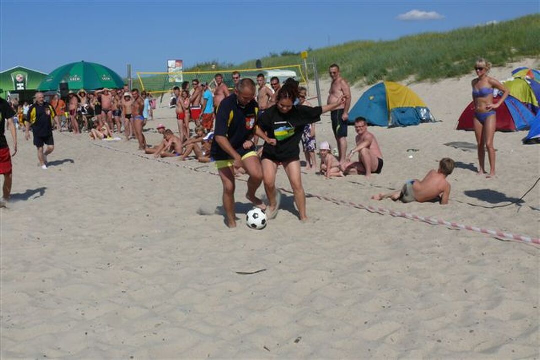 W upalną sobotę 8 sierpnia b.r. w ramach Festiwalu Reggae na zachodniej nadmorskiej plaży w Darłowie odbył się niecodzienny mecz Soccer Beach - Dredziarze kontra Krawaciarze. Przypomną, że dredziarze to ci, co noszą dready- symbol Rastafarian.  W teamie krawaciarzy grali darłowscy urzędnicy. Mecz trwał dwie tercje po 20 minut. Po obu stronach piaskowego boiska grało po 5 zawodników, a drugie tyle było rezerwowych. Po stronie dredziarzy zagrała również zawodniczka. Oglądaliśmy 6 wspaniałych bramek oraz znacznie większą liczbę rewelacyjnych interwencji bramkarskich. Świecące słońce, wspaniały piaszczysty stadion obramowany wianuszkiem zgrabnych dziewcząt motywował zawodników do wielkiego wysiłku. W tym widowiskowym meczu zwycięstwo odnieśli darłowscy urzędnicy w stosunku 5:1. Po dwie bramki strzelili dyrektor OSiR-u Waldemar Smigielski i Rafał Marciniak i oni rywalizowali o miano lidera strzelców w rzutach karnych. Zwyciężył Rafał Marciniak. Niecodzienny mecz skupił uwagę sporej części plażowej publiczności. Okazuje się, że darłowscy urzędnicy są nie tylko skuteczni w pozyskiwaniu unijnych środków na inwestycje.