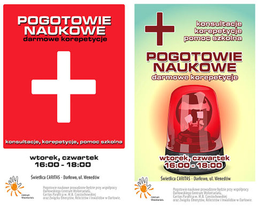 Wolontariusze z Zespołu Szkół im. Stefana Żeromskiego w Darłowie serdecznie zapraszają uczniów szkół podstawowych i gimnazjum na darmowe korepetycje we wtorki i czwartki w godzinach od 16:00 do 18:00 w świetlicy Caritas przy ul. Wenedów. Zajęcia rozpoczęły się od 1 października 2009 r.