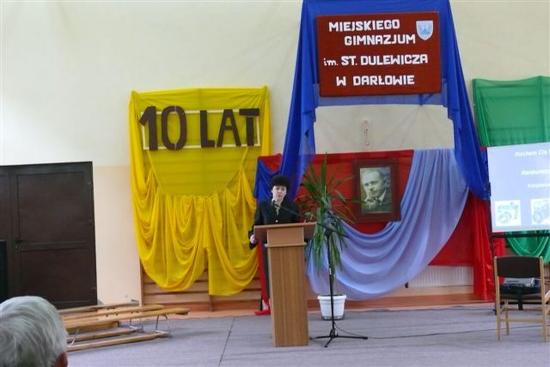 Rozpoczęła ją swoim wystąpieniem dyrektor Małgorzata Świątkowska, która przywitała przybyłych gości oraz opowiedziała o zmianach i sukcesach Miejskiego Gimnazjum na przestrzeni 10. lat. Powojenne tradycje szkoły sięgają 1945 r., kiedy utworzono tu Szkołę Podstawową. Od dziesięciu lat na mapie darłowskiej edukacji czytelnie zaznacza swą obecność Miejskie Gimnazjum powołane do życia w wyniku reformy oświaty w roku 1999. Wyzwania, jakim należało sprostać, były dla tej placówki oświatowej przede wszystkim inspiracją. Moment powstania spowodował z jednej strony twórczą rywalizację, z drugiej niezwykłe zintegrowanie. Ta mieszanka w efekcie przyniosła wiele nowych umiejętności i zrealizowanych projektów. Po dziesięciu latach funkcjonowania można już dokonać podsumowania zreformowanego systemu oświatowego, a zwłaszcza jego nowego elementu, którym są szkoły gimnazjalne, nie tylko analizując plusy i minusy tego rozwiązania, ale przyglądając się z bliska osiągnięciom szkół, uczniów i nauczycieli gimnazjów w Darłowie.
