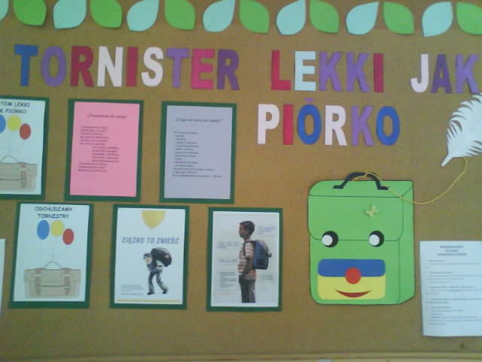 W Szkole Podstawowej nr 3 w Darłowie rozpoczęliśmy akcję pod hasłem „TORNISTER LEKKI JAK PIÓRKO". W ramach jej realizacji działania podjęli nauczyciele, rodzice i uczniowie.