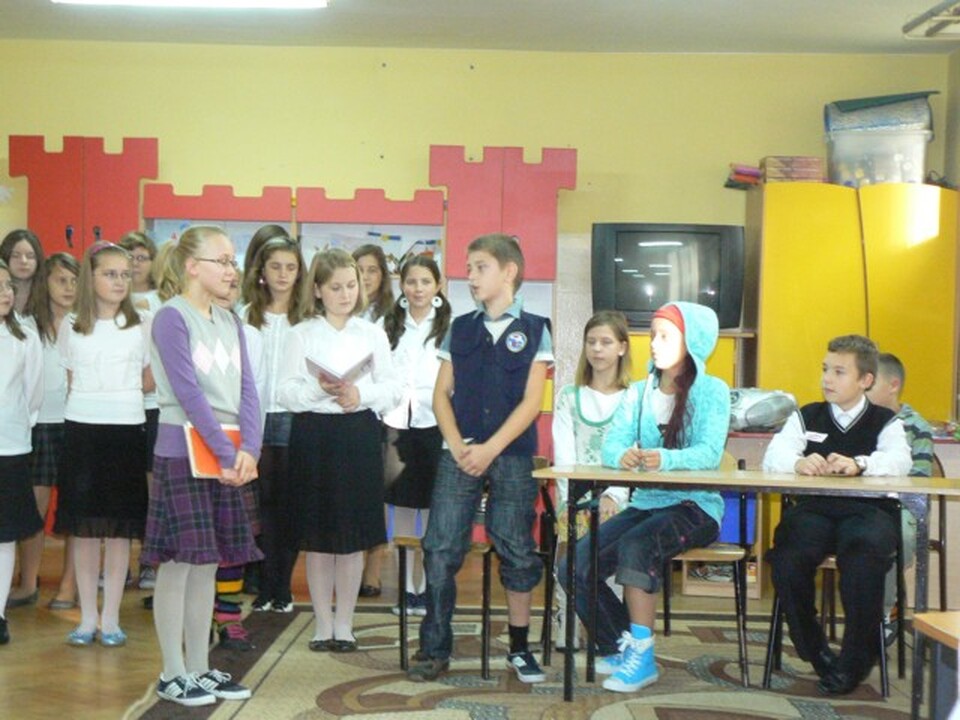 Po południu przygotowaliśmy nauczycielom niespodziankę, którą była akademia pt. „Asy z naszej klasy". W jej organizacji pomogły nam panie: Jolanta Czarnuch, Anna Rudzka i Halina Bajor oraz p. Marzena Wolska - odpowiedzialna za oprawę muzyczną. Aktorami stali się uczniowie klas: V A, V B, V C, VI B i VI C, którzy, by w pełni oddać trud nauczycieli i wychowawców, odegrali kilka scenek z życia szkoły.