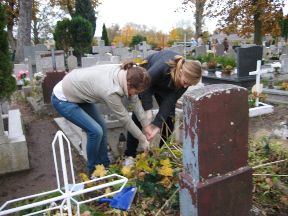 Porządkowano groby rówieśników i osób dorosłych, a także pomagano osobom starszym w uporządkowaniu grobów ich bliskich. M.in. młodzież pomogła oczyścić i uporządkować grób krewnego starszej pani z Niemiec, którą okradziono podczas podróży do Polski.