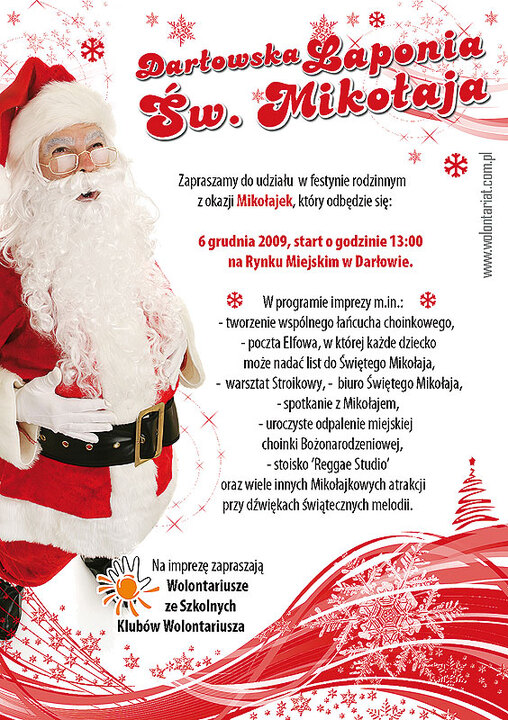 Już w niedzielę 6 grudnia zapraszamy wszystkie dzieci wraz z rodzicami na rynek miejski gdzie odbędzie się festyn rodzinny z okazji Mikołajek pod nazwą Darłowska Laponia Świętego Mikołaja. Impreza rozpocznie się o godzinie 13:00 i potrwa do 16:00. W programie między innymi: