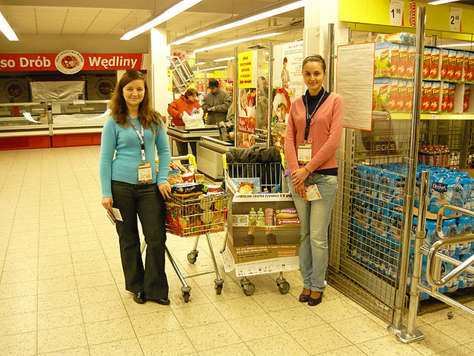 Zbiórka "Podziel sie żywnością" jest jedną z najpopularniejszych form pomocy dzieciom. Wolontariuszy wspierali nauczyciele - Edyta i Janusz Resil oraz Waldemar Tałanda.