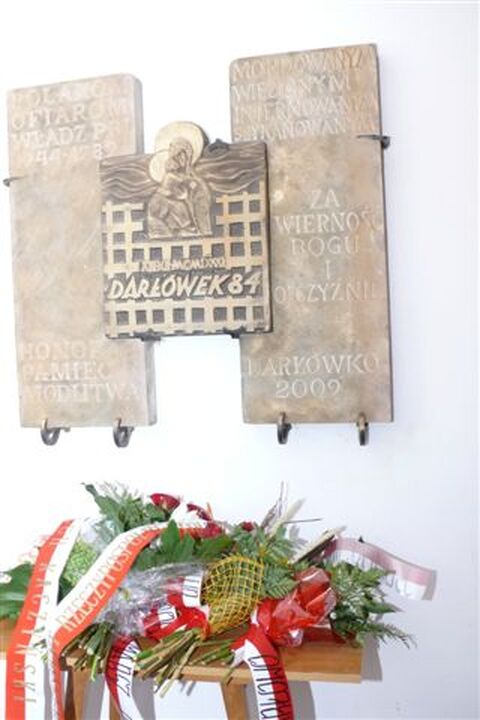 W 28 rocznicę wprowadzenia stanu wojennego 13 grudnia 2009 r. w kościele p.w. Św. Maksymiliana Marii Kolbego w Darłówku odbyła się uroczysta msza święta za Ojczyznę i ofiary stanu wojennego. Pośród pocztów sztandarowych wyróżniał się poczet ze sztandarem ufundowanym przez internowanych w Darłówku. Po mszy świętej, którą celebrowali Franciszkanie o. o. : Marek Kiedrowicz, Stanisław Piankowski, Janusz Jędryszek, Anzelm Grabowski i Stanisław Kotulski odsłonięto tablicę pamiątkową, poświęconą już w roku 1984 przez biskupa Ignacego Jeża. Niestety władze wówczas nie zezwoliły na jej umieszczenie. Obecnie po odnowieniu i uzupełnieniu przez artystę rzeźbiarza Zygmunta Wujka odsłonięto ją w przedsionku kościoła. Proboszcz miejscowej parafii o. Marek został obdarowany przez kapelana internowanych różańcem zrobionym z chleba i nitki wyciągniętej z koca, wykonanym w Ośrodku Odosobnienia w Darłówku. Po mszy św. doszło do spotkania osób, które były internowane w ośrodku wczasowym „Mostostalu - Gniewko" Darłówku Wschodnim w czasie stanu wojennego. Wzięli w nim udział m.in.: Joanna Gwiazda, Gabriela Cwojdzińska, Michalak Paweł, Paweł Wieczorek, Jadwiga Łopacińska, Anna Rokocz oraz Andrzej Gwiazda. Wielu z nich wspominało trudne czasy internowania w Darłówku.