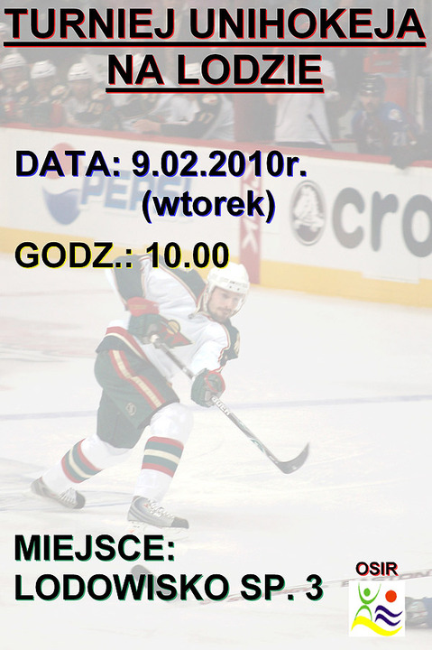 Ośrodek Sportu i Rekreacji zaprasza 09.02.2010 (tj. wtorek) o godz. 10:00 na Turniej UNIHOKEJA na lodzie. Odbędzie się on na lodowisku zlokalizowanym przy Szkole Podstawowej nr 3 w Darłowie. Zapraszamy serdecznie.