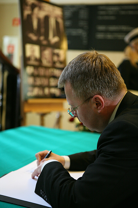 w Darłowie. W głównym holu ratusza wystawiono księgę kondolencyjną, przy której wartę pełnią uczniowie ze Szkoły Morskiej. Pierwszego honorowego wpisu dokonał burmistrz Darłowa. Każdy mieszkaniec miasta może wpisać swoje odczucia do księgi w godzinach otwarcia urzędu od 13 do 16 kwietnia, w piątek urząd jest czynny do godziny 14:00.