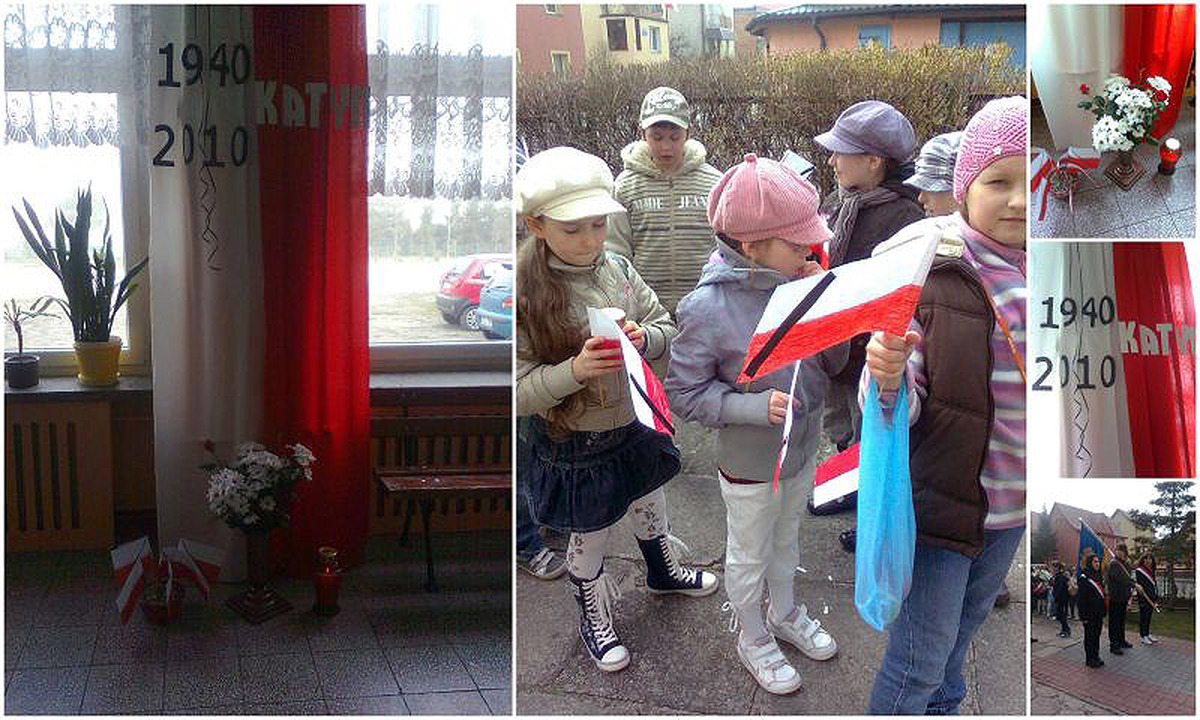 13. kwietnia, w dniu Światowego Dnia Pamięci Ofiar Zbrodni Katyńskiej, niosąc sztandar szkoły, przeszliśmy uroczystym pochodem - w Marszu Milczenia -  do kościoła, by tam podczas Mszy modlić się za wymordowanych przez NKWD  i ofiary katastrofy lotniczej z dn.10.kwietnia. Każdy uczeń niósł znicz lub symboliczną flagę z kirem. Podczas Mszy Świętej o. Czesław przypomniał nam fragment listu św. Pawła do chrześcijan w Rzymie :Nikt zaś z nas nie żyje dla siebie i nikt nie umiera dla siebie: jeżeli bowiem żyjemy, żyjemy dla Pana; jeżeli zaś umieramy, umieramy dla Pana. I w życiu więc, i w śmierci należymy do Pana (Rz 14, 7-8) . Podczas kazania panowała cisza i skupienie na słowach kapłana, który przesłanie swej nauki obrał w słowa jasne i zrozumiałe nie tylko dla klas starszych, ale także dla najmłodszych uczniów naszej szkoły. Wszyscy przeżyli refleksję nad własnym życiem, tak kruchym i ulotnym. Każdy złożył znicz pod kościelnym krzyżem oddając hołd Parze Prezydenckiej i pozostałym tragicznie poległym.