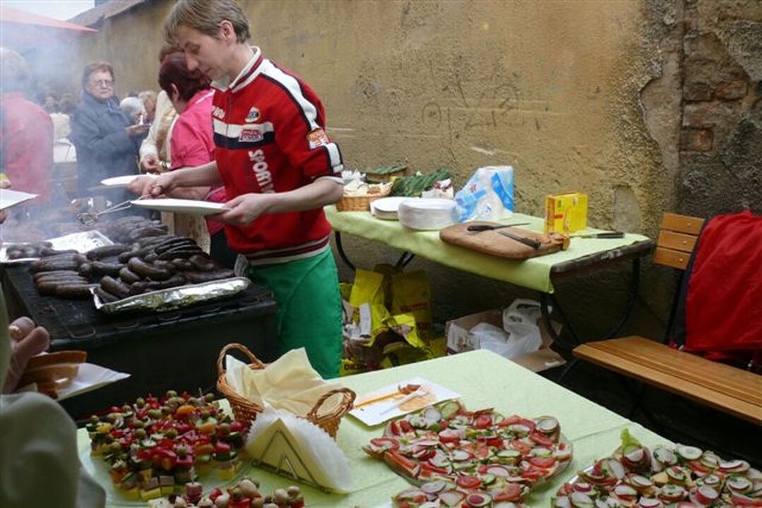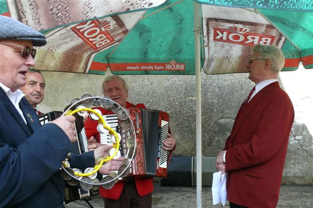 Po uroczystości wspomagający emerytów i rencistów sponsorzy i przyjaciele serwowali napoje, kiełbaski, ryby i ciasta w rytm przygrywającej kapeli „Darłowianie".