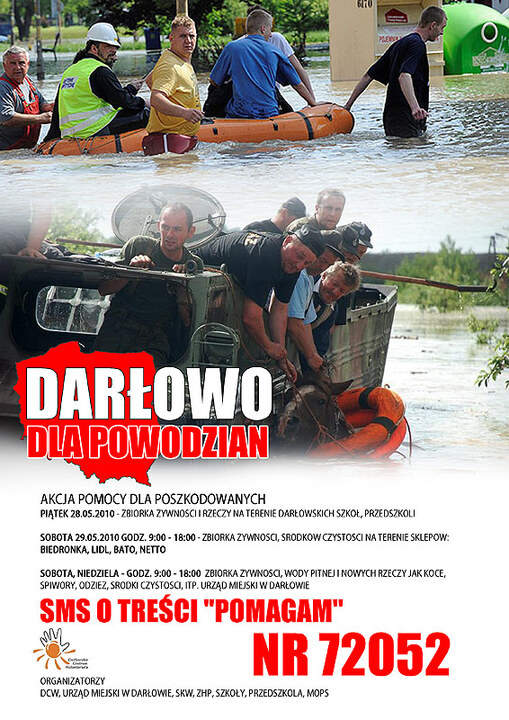 Zbiorki darów odbywać się będą w piątek 28 maja w szkołach i przedszkolach, w sobotę 29 maja w godz. 9-18 w „Biedronce", „Bato", Netto i w „Lidlu" oraz w sobotę i niedzielę 29 i 30 maja w godz. 9-18 w ratuszu. Datki pieniężne po każdej mszy św. zbierał będzie Caritas