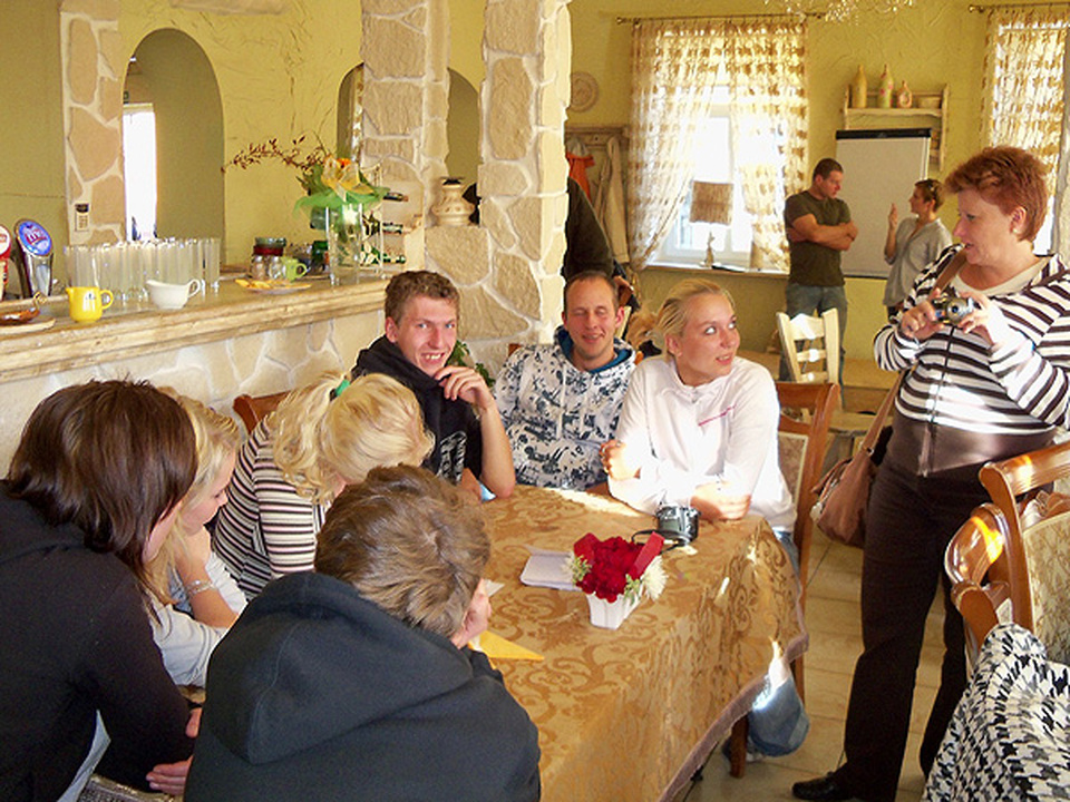 Na kolejnych warsztatach , które odbyły się w restauracji pana Dariusza Kosa "Karczma Rzymska" uczniowie doskonalili umiejętności organizowania i kalkulowania imprez okolicznościowych. Wspólnie wypracowali tzw. checklistę kolejności wykonywanych związanych z tym czynności. Kolejną miłą niespodzianką była tego dnia dyskoteka mająca na celu integrację młodzieży z trzech państw. Ten dzień zapisał się w pamięci młodzieży "głośnymi dźwiękami" najnowszych hitów z list przebojów.