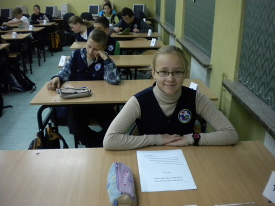Kilka dni później, 22 października, zmagano się z zadaniami przygotowanymi na szkolne eliminacje Konkursu Matematycznego z Elementami Przyrody. Tym razem w szranki stanęło szesnaścioro uczniów. Najwyższe wyniki uzyskali: Kacper Krakowiak (6a), Oliwia Lendzian (6a), Julia Studzińska (6c) i Milena Łusiak (6b). 6XII, w mikołajki, wybiorą się oni do Sławna na eliminacje rejonowe.
