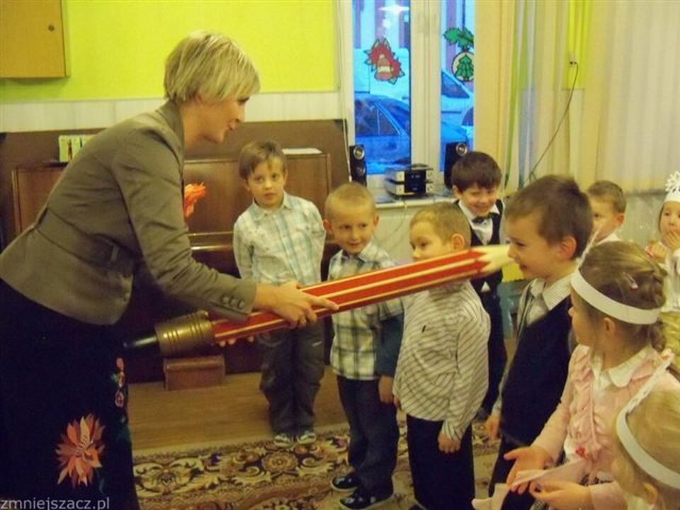 Tego dnia spotkały się dzieci z najmłodszej grupy, ich rodzice i nauczycielki. Pasowanie na Przedszkolaka symbolizuje przyjęcie malucha do społeczności przedszkolnej. Od wielu dni dzieci przygotowywały się do tego wydarzenia. Przedszkolaki zaśpiewały rodzicom piosenki, recytowały wiersze, prezentowały tańce, których nauczyły się do tej pory w przedszkolu. Pasowania olbrzymią kredką dokonała pani dyrektor Iwona Jaźwińska. Każdy przedszkolak otrzymał pamiątkowy dyplom, oraz drobny upominek. Tego samego dnia dzieci 4 i 5 letnie otrzymały imię dla swojej grupy i od tej pory będą nazywać się „Zajączkami". Jednocześnie dokonano również aktu pasowania na przedszkolaka wychowanków uczęszczających do przedszkola od obecnego roku szkolnego.