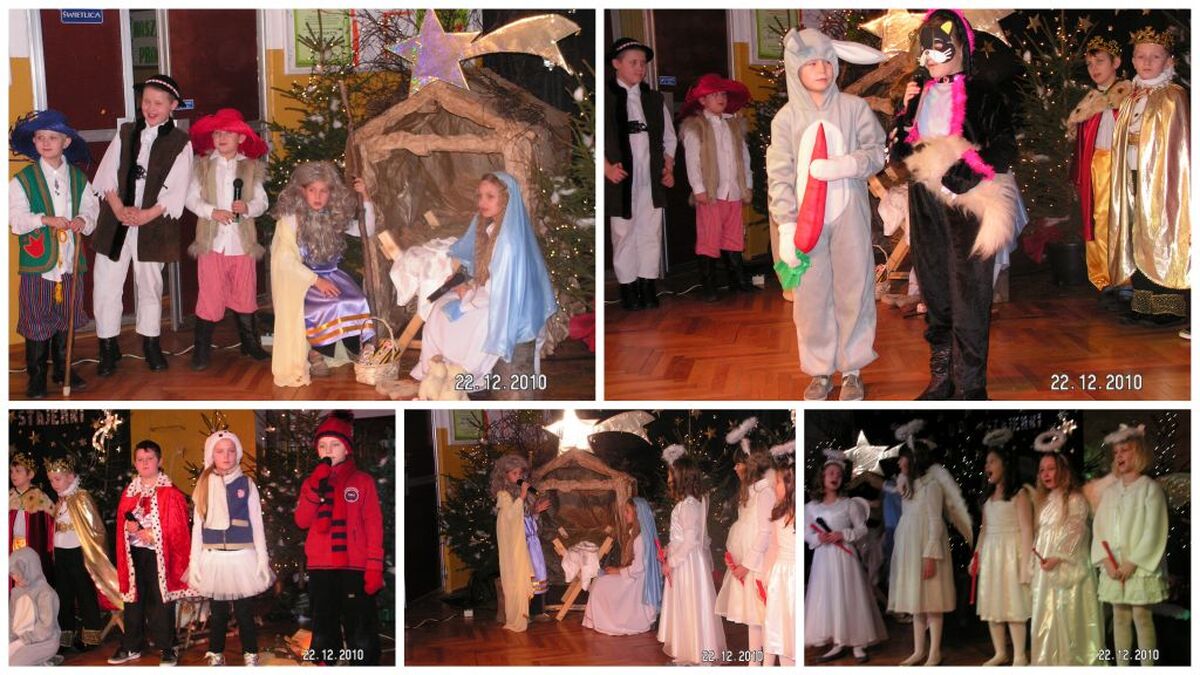 narodzin Chrystusa. Był św. Józef, Maryja, Trzej Królowie, pasterze  i dzieci. Mali aktorzy z dużym przejęciem i poświęceniem wiernie  odtworzyli swoje role. Przygotowania do przedstawienia trwały od  miesiąca, uczniowie poświęcili wiele czasu na próby i przygotowania, tym  bardziej, że poza nauką tekstu, dzieci uczyły się też śpiewać, by  w pełni oddać radość z narodzenia Pana. Całość przedstawienia została  przygotowana pod kierunkiem wychowawczyni p. Iwony Lubowieckiej.
