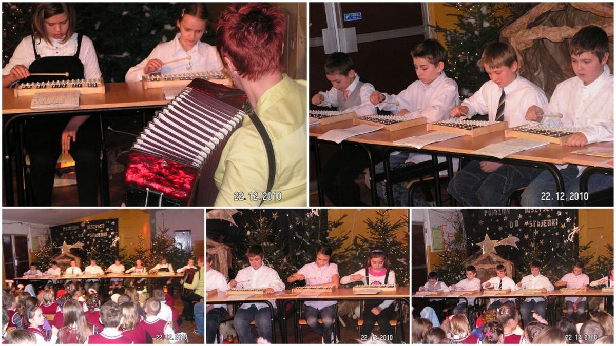 Pani Małgorzata Osmańska wraz ze swoim zespołem przygotowała utwory  muzyczne związane ze świętami. Uczniowie fantastycznie zagrali je na  dzwonkach. Kiedy artystyczna część dobiegła końca, wszyscy występujący  na scenie otrzymali gromkie brawa, które były uznaniem za piękne  wykonanie przedstawienia.
