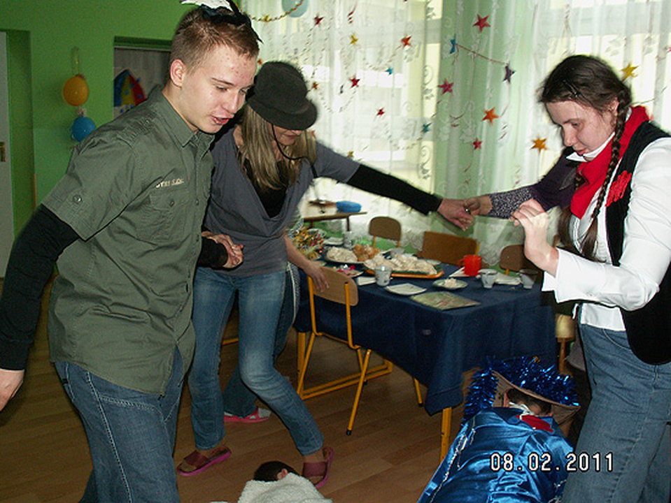 Sala zajęć Dziennego Ośrodka Rehabilitacyjno-Terapeutycznego zamieniła się wczoraj w salę balową, na której spotkali się Diabeł i Anioły, Spiderman, Pippi, D'Artagnan, Kowboje, Pastuszek, Gosposia, Kibic, Król i Królowa, Dama Dworu, Wenecjanin, Elfik.