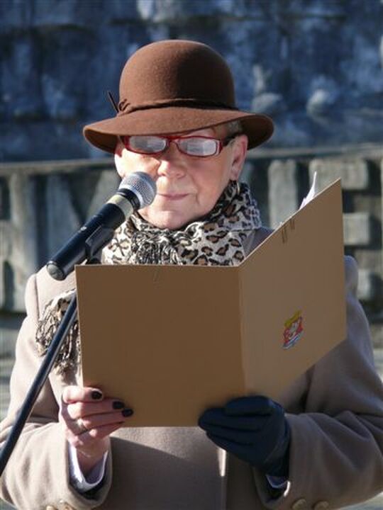Okolicznościowe przemówienie wygłosiła sekretarz Klubu Pionierów Ziemi Darłowskiej Bożena Tomalak. Przypomniała ona o wkładzie w rozwój Darłowa przybyłych tu z różnych stron Polski rodaków, którzy w ciężkich czasach uruchomili port, połowy rybackie, transport kolejowy oraz kilka zakładów produkcyjnych. Głos zabrał również ojciec miasta Arkadiusz Klimowicz, który podziękował pierwszym osadnikom i ich rodzinom za ich wkład w zagospodarowanie i rozwój Darłowa.