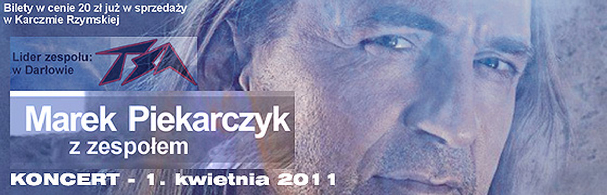 Lider zespołu TSA - Marek Piekarczyk wraz z zespołem 1 kwietnia 2011 zagra w Darłowie. Koncert odbędzie się w Karczmie Rzymskiej (ul. Powstańców Warszawskich) o godzinie 20:00.