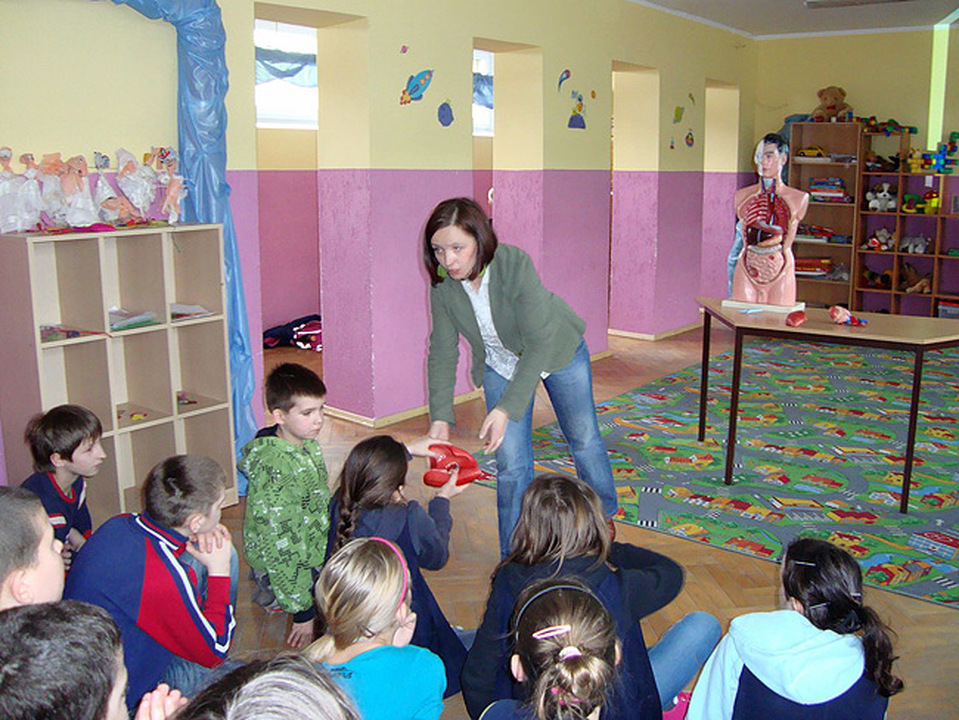 Prowadząca pokaz wykorzystała model torsu człowieka z wyjmowanymi organami, dzięki czemu dzieci dowiedziały się i zobaczyły na własne oczy, jak wyglądają płuca, mózg, serce i inne organy oraz, w którym miejscu się one znajdują. Mogły je także wziąć do ręki, dotknąć i porównać. Takie praktyczne metody nauczania zostawiają w głowach młodych ludzi najtrwalsze ślady. Widać to było po zainteresowaniu uczestników tematem oraz czynnym udziale w spotkaniu. Na zakończenie prelekcji dzieci bardzo trafnie odpowiadały na pytania utrwalające wiedzę, udowadniając tym samym, że nie „przespali" tej ważnej dla nich lekcji.