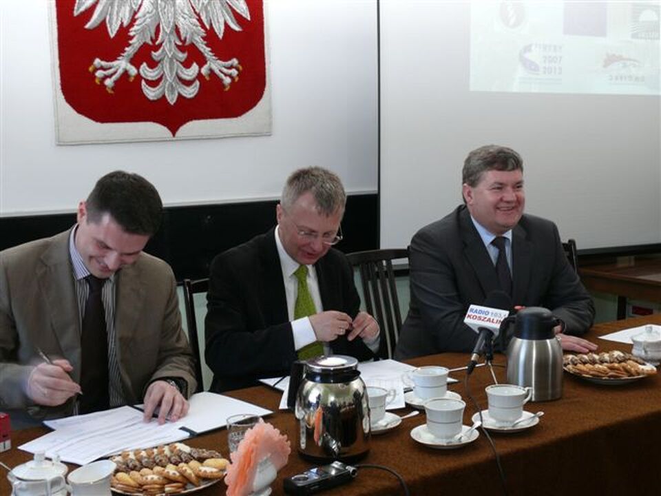 W sali konferencyjnej darłowskiego ratusza 18 kwietnia Jarosław Łojko - prezes Agencji Restrukturyzacji i Modernizacji Rolnictwa w Szczecinie z Arkadiuszem Klimowiczem - burmistrzem miasta Darłowo w obecności wiceministra rolnictwa Kazimierza Plocke, i radnych Rady Miejskiej podpisali umowę o dofinansowaniu przyjętego projektu, pod nazwą - „Połączenie dolnej części rybackiego portu Darłowo z drogami lokalnymi poprzez budowę ulicy Nadmorskiej".