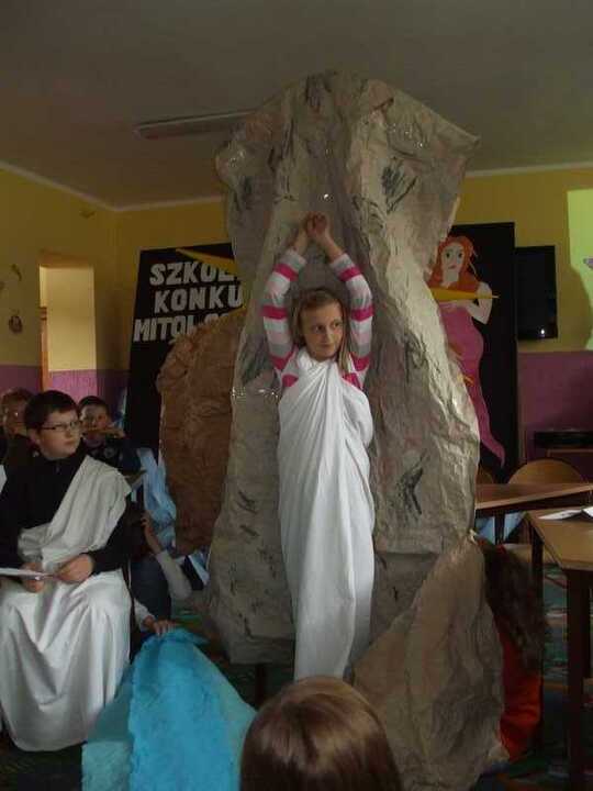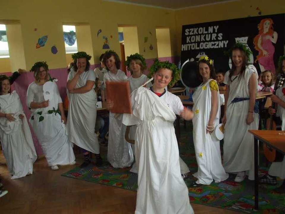 W pierwszej części przedstawiciele poszczególnych klas wystąpili przebrani za dowolną postać mitologiczną , prezentując ją. Wszystkie stroje były dopracowane i starannie wykonane. Ocenie podlegała prezentacja postaci (strój, rekwizyty, pomysłowość) oraz samo wystąpienie m.in. płynność i oryginalność wypowiedzi.