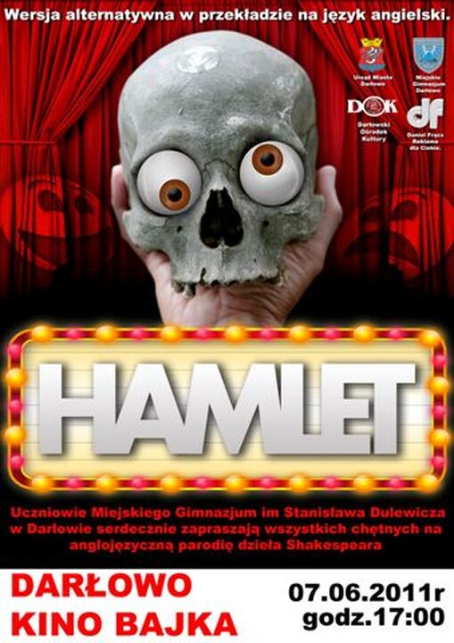 7 czerwca 2011 roku w darłowskim kinie ,,Bajka" odbyło się przedstawienie anglojęzyczne pt.: ,,Hamlet". Parodię znanego utworu Szekspira przedstawili uczniowie Miejskiego Gimnazjum im. Stanisława Dulewicza w Darłowie z klas I, II i III pod kierunkiem Pani Justyny Kowalskiej i Pani Agaty Błaszczak. Główne role zagrali: Marta Borkowska III B, Adam Czapnik III C, Kornel Szczepanowski III C, Szymon Żebrowski III C, Bartek Rudzki III C, Konrad Madejczyk III A, Kasia Malec III B, Karolina Adamczak III B, Weronika Wolska II C, Łukasz Więckowski II C, Dominika Pawlak II C, Patrycja Szewczyk II C, Idalia Jaskulska II C, Kinga Pakmur I D. Pomysł na sztukę w tej nowatorskiej wersji okazał się strzałem w dziesiątkę. Publiczność zgromadzona w kinie bawiła się doskonale i gromkimi brawami nagrodziła młodych aktorów.