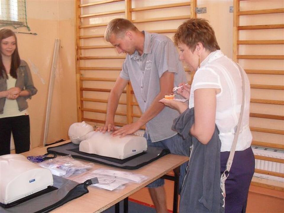 Ważnym elementem był pokaz i prezentacja fantomu- zakupionego przez Radę Rodziców. Każdy rodzic mógł sprawdzić swoją umiejętność prawidłowego wykonania sztucznego oddychania. Podczas pobytu w szkole rodzice mogli obejrzeć prezentację multimedialną, dotyczącą zasad i sposobów udzielenia pierwszej pomocy, kupić książkę, a w międzyczasie odbył się słodki poczęstunek.