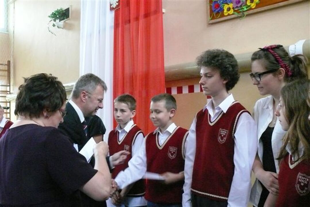 Arkadiusz Klimowicz - burmistrz miasta Darłowa podziękował gronu pedagogicznemu i pracownikom szkoły za ich wkład w wychowanie młodego pokolenia i osiągnięcie dobrych rezultatów. Dziękował również rodzicom za podjęcie inicjatywy utworzenia z nowym rokiem szkolnym 2011/2012 Zespołu Szkół Społecznych, który będzie podlegał Społecznemu Stowarzyszeniu Oświatowemu. Burmistrz obiecał Bożenie Tatuśko, która będzie zarządzać nową placówką szkolną pomoc w realizacji zadań oświatowych i wychowawczych. Deklarację tę przyjęto owacyjnie. Następnie ojciec miasta wręczył najlepszym uczniom stypendia. Natomiast wychowawcy klas i dyrektorka szkoły wręczyły najlepszym uczniom nagrody książkowe, a rodzicom podziękowania i kwiaty. Życzeniom dalszych osiągnięć, podziękowaniom za współpracę nie było końca. To szczególne spotkanie było ostatnią uroczystością w Zespole Szkół, jako jednostce podlegającej darłowskiemu samorządowi. Po rozdaniu świadectw rozpoczęły się wakacje.