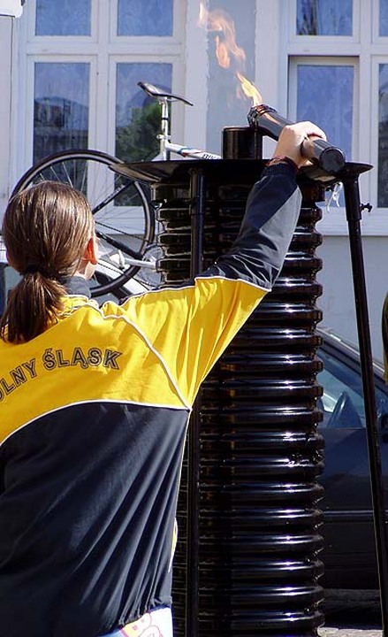 W drugim dniu zawodów 15 lipca br. w Darłowie wciągnięto flagę olimpijską na maszt i zapalono znicz XIII Ogólnopolskiej Olimpiady Młodzieży w kolarstwie szosowym. Apel olimpijski odczytała kontuzjowana Agnieszka Sawosz z Klubu Kolarskiego Kross Ziemia Darłowska. W finałach kolarstwa szosowego dziewcząt i chłopców wzięło udział ponad 150 młodych uczestników z 16 województw. Podczas uroczystego zakończenia młodzieżowych igrzysk medalami i tytułami Mistrzów Polski zostali uhonorowani w kategoriach: - W wyścigu na 95,8 km ze startu wspólnego Mistrzem Polski juniorów młodszych został Andrzej Bartkiewicz z klubu Bustan Brzeg w Nysie z województwa opolskiego. Dystans prawie stu km pokonał w czasie 2:29:46 osiągając prędkość 38,4 km/godz. - Pierwszym wicemistrzem został Dorian Bartkiewicz z klubu TKK Pacyfic Toruń z województwa kujawsko – pomorskiego, - Drugim wicemistrzem został Mateusz Nowaczek z klubu Stal Ekobud Ocetix Grudziądz z województwa kujawsko – pomorskiego. Najlepszy zawodnik z województwa zachodniopomorskiego Marcin Kołba z Baszty Golczewo zajął 8 miejsce. - W wyścigu na 55,4 km ze startu wspólnego juniorek młodszych Mistrzynią Polski została Paulina Fronczak z klubu Art- Print w Olsztynie w województwie warmińsko - mazurskim. Przebyła ona dystans 55,4 km w czasie 1:34:22 z prędkością 35,2 km/godz. - Pierwszą wicemistrzynią Polski została Natalia Mielnik z klubu Sokół Ryczek Jerzmanowa w województwie dolnośląskim. - Drugą wicemistrzynią została Karolina Garczyńska z klubu Dwójka Gosso Lek Stryków w województwie łódzkim. Najlepsza darłowianka Aleksandra Maciąg z KK Kross Ziemia Darłowska zajęła 9 miejsce. - W klasyfikacji klubów pierwsze miejsce z 31 punktami zdobył Bustan Brzeg Nysa przed Art – Print Olsztyn (27p.) i Dwójką Gosso Lek Stryków – 22 punkty. KK Kross Ziemia Darłowska z 4 punktami zdobył 27 miejsce. - W kategorii województw najwięcej punktów – 58 zdobyło dolnośląskie przed warmińsko - mazurskim (44 p) i wielkopolskim (37p). Województwo zachodniopomorskie z 18 punktami zajęło 8 miejsce.LW