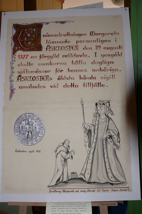 Krótko po 1380 opactwo Ås zostało zniszczone w wyniku pożaru. Fakt ten wspomina król Eryk Pomorski w liście do opata Swena w roku utworzenia unii Kalmarskiej (1397). Król Eryk przyczynił się do jego odbudowy. Z tego okresu znana jest kolejna pieczęć opactwa eksponowana na wystawie. Mattias Errikson był ostatnim opatem Ås. W okresie reformacji przeszedł na protestantyzm i został proboszczem w dwóch parafiach, Ås i Veddige. Oprócz parafii otrzymał on 10 gospodarstw rolnych i młyn. W związku z tym, iż nie obowiązywał go już celibat, założył rodzinę.