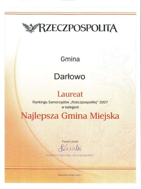 Darłowo znalazło się w czołówce prestiżowego „Rankingu Samorządów 2007” opracowanego przez opiniotwórczy ogólnopolski dziennik „Rzeczpospolita”. Ranking został opublikowany w specjalnym dodatku do „Rzeczpospolitej” 13 lipca.