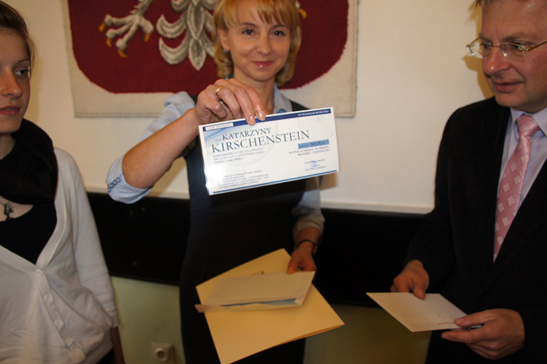 Burmistrz Miasta wspólnie z Przewodniczącym Rady Miejskiej wręczyli symboliczne „czeki" sportowcom, a rodzicom listy gratulacyjne. Stypendia sportowe otrzymały: Katarzyna Kirschenstein, Alicja Komoś, Karolina Komoś - wszystkie z Klubu Kolarskiego „Ziemia Darłowska". Z kolei nagrody sportowe otrzymali: Patrykowi Pyszniak - z Darłowskiego Międzyszkolnego Klubu Sportowego „Delfin" Wiktor Kałużny, Julia Brygała, Edyta Kołosowska, Łukasz Raczkowski, Bartosz Nowak- wszyscy z Pływackiego Uczniowskiego Klubu Sportowego „Neon", Karolina Garczyńska, Sabina Napieralska, Daria Fabiszak, Alicja Komoś, Justyna Mazur, Katarzyna Kirschenstein, Dorota Tarczyło, Patrycja Jacyszyn - wszystkie z Klubu Kolarskiego „Ziemia Darłowska".