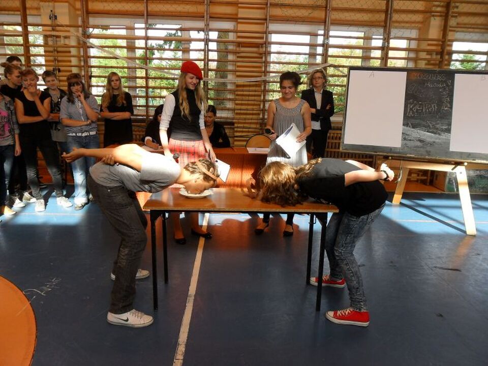 STO w Darłowie odbyły się OTRZĘSINY uczniów klasy I gimnazjum. Impreza została przygotowana przez starszych kolegów i koleżanki z klasy II gimnazjum oraz wychowawczynię panią Joannę Gajewicz.