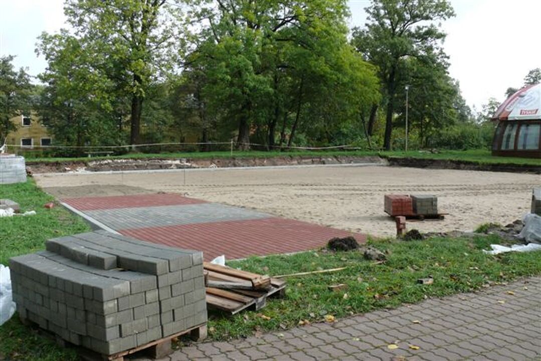 Na Wyspie Łososiowej w Darłowie rozpoczęto wykonywanie podbudowy pod zimowe sztuczne lodowisko.