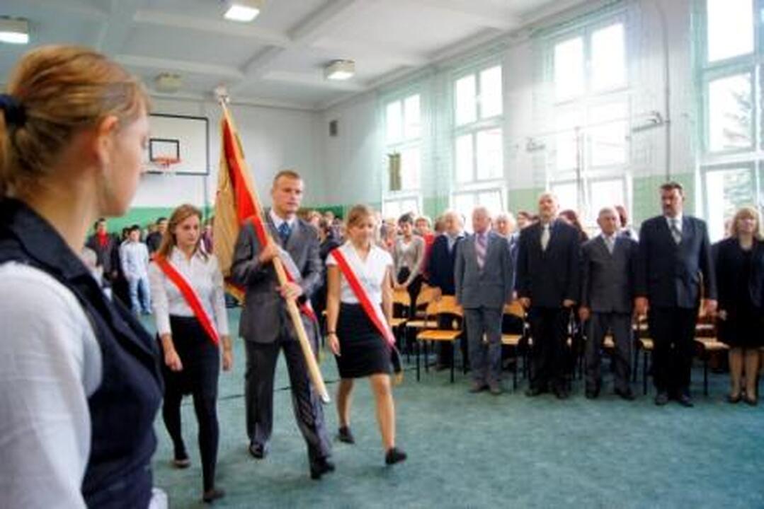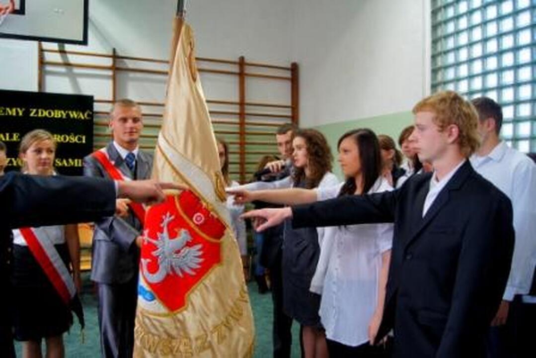 O godzinie 10.50 rozpoczęło się uroczyste ślubowanie uczniów klas pierwszych Liceum Ogólnokształcącego oraz Zasadniczej Szkoły Zawodowej. Przybyło wielu gości, zaszczycili nas swoją obecnością byli dyrektorzy szkoły pan Stanisław Huzarek oraz pan Zbigniew Stańczak. Wiceprzewodnicząca Samorządu Szkolnego Paulina Ulik przypomniała kilka ważnych wydarzeń z historii placówki, zaakcentowała również, że w tym roku przypada 55 rocznica powstania Liceum Ogólnokształcącego. Uczniowie pierwszych klas zostali przyjęci do grona uczniów szkoły i otrzymali pamiątkowe certyfikaty. Podczas uroczystości nastąpiło również przekazanie sztandaru przez uczniów klas trzecich, nowemu pocztowi sztandarowemu, który przez kolejne 2,5 roku będzie reprezentował szkołę podczas ważnych uroczystości.
