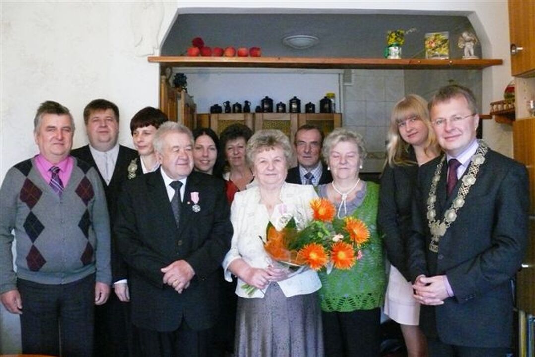 Z tej okazji Arkadiusz Klimowicz - burmistrz miasta Darłowo w asyście Haliny Gałuszka -kierownika Urzędu Stanu Cywilnego odwiedzili jubilatów i złożyli im życzenia, kwiaty i gratulacje. Burmistrz w imieniu Prezydenta RP odznaczył oboje medalami Za Długoletnie Pożycie Małżeńskie oraz złożył dostojnym jubilatom serdeczne życzenia jeszcze długich lat w zdrowiu i szczęściu.