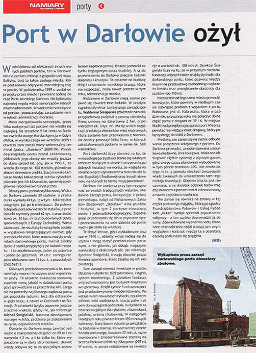 Namiary na morze i handel - polskojęzyczny dwutygodnik specjalistyczny informujący fachowo o najważniejszych wydarzeniach i problemach w polskiej gospodarce morskiej opublikował: