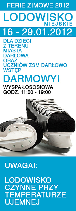 Jak nas poinformował dyrektor Darłowskiego Ośrodka Kultury - Arkadiusz Sip, w dniu jutrzejszym tj. 17 stycznia 2012 roku zostanie uruchomione i oddane do użytkowania lodowisko miejskie.