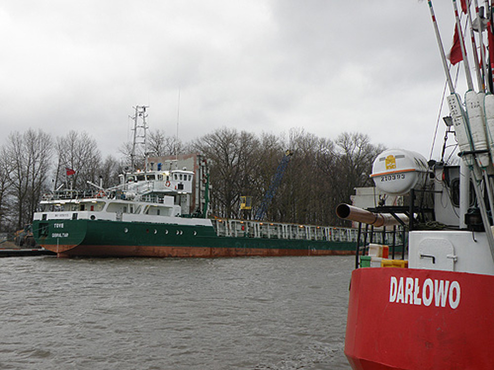 M/v TOVE pod banderą Giblartaru jest pierwszym w tym roku statkiem handlowym w naszym porcie. Jednocześnie jest pierwszym, który został rozładowany na Nabrzeżu Dorszowym II (teren po dawnej fabryce mączki rybnej). Przywiózł 2100 ton kruszywa z Eikefet w Norwegii.