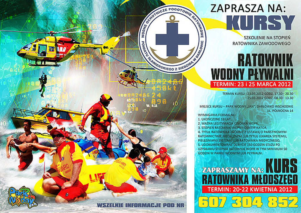 Oddział Powiatowy WOPR w Sławnie z siedzibą w Darłowie organizuje w dniu 23 marca 2012 i 25 marca 2012 roku szkolenie na stopień Ratownika Zawodowego - Ratownik Wodny Pływalni.