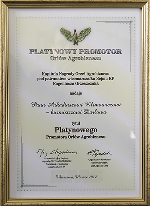 Kapituła przyznała nagrodę bankowi na podstawie obserwacji sukcesu rynkowego. Równocześnie tytuł i nagrodę Platynowego Promotora Orłów Agrobiznesu otrzymał burmistrz Arkadiusz Klimowicz za rekomendację Banku.