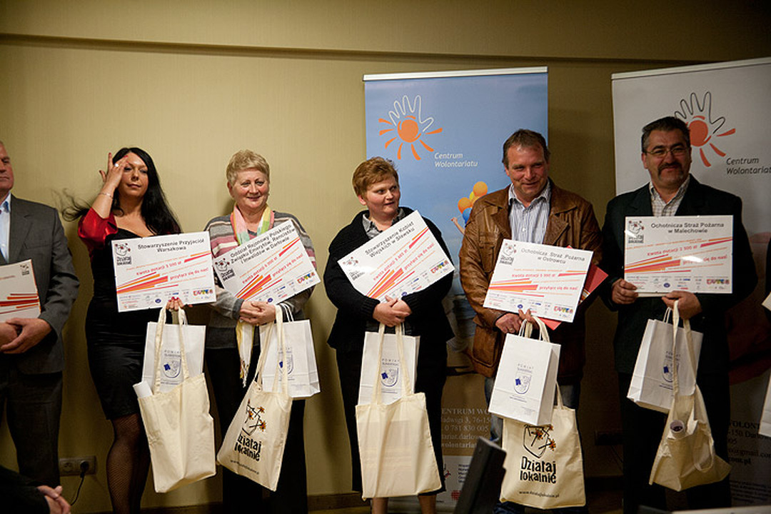 Punktem kulminacyjnym było wręczenie umów, dyplomów i materiałów promocyjnych dla tegorocznych laureatów Programu „Działaj Lokalnie", które otrzymali z rąk partnerów strategicznych i samorządowych. W tym roku granty na łączną kwotę 42 000 zł powędrowały do Oddziału Rejonowego Polskiego Związku Emerytów, Rencistów i Inwalidów w Darłowie, Stowarzyszenia Kobiet Wiejskich w Sławsku, Ochotniczej  Straży  Pożarnej w Ostrowcu, Ochotniczej Straży Pożarnej w Malechowie, Stowarzyszenia Osób Niepełnosprawnych, ich Rodzin i Przyjaciół na Terenie Ziemi Darłowskiej i Gmin Ościennych, Stowarzyszenia Przyjaciół Warszkowa, Stowarzyszenia Rozwoju Wsi Korlino, Łącko, Łężek, Królewo „Razem" w Korlinie, Uczniowskiego Klubu Sportowego Orlik Darłowo przy Szkole Podstawowej nr 3, Stowarzyszenia Na Rzecz Dzieci Malechowa „Jelonek" i Samorządu Uczniowskiego działającego w Zespole Szkół  im. S. Żeromskiego w Darłowie.