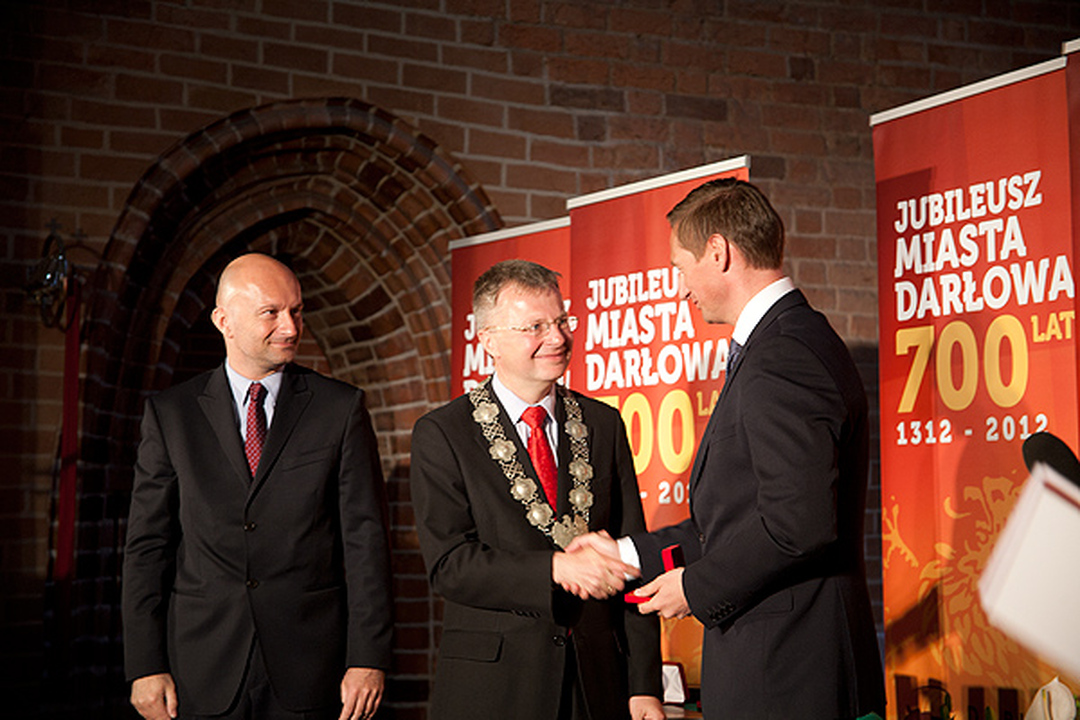 W niedzielę 20 maja 2012 koncertem Magdy Umer zakończyły się oficjalne obchody Jubileuszu Miasta Darłowa - 700 lat praw miejskich. Dziś zapraszamy do obejrzenia fotorelacji z uroczystości jakie towarzyszyły obchodom tak podniosłych urodzin. Uwieczniliśmy takie wydarzenia jak: Darłowski Wieczór filmowy, otwarcie wystawy Leszka Walkiewicza, piątkowy wieczór koncertowy z udziałem Świadomości i zespołu Afromental, święto Straży Granicznej. Ponadto oficjalną Akademię Jubileuszową, która odbyła się w kościele Mariackim w Darłowie - 19 maja 2012 roku. Podczas niej Marek Krajewski - autor kryminałów i Honorowy Obywatel Miasta Darłowa w oficjalnej mowie wyraził za co lubi i kocha Darłowo. Całość zarejestrowaliśmy i upubliczniamy. Ostatniego dnia odbył się turniej szachowy oraz odsłonięto tablicę upamiętniają miejsce, w którym w 1945 roku mieściła się słynna w całych Niemczech firma wędliniarska Rugenwalder Muhle produkująca Rugenwalder Teewurst (darłowską kiełbasę). Polecamy uwadze.