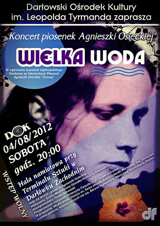 Darłowski Ośrodek Kultury im. Leopolda Tyrmanda zaprasza na koncert piosenek Agnieszki Osieckiej pn.: „Wielka Woda" w wykonaniu laureatek Ogólnopolskiego Konkursu na Interpretacje Piosenek Agnieszki Osieckiej „Oceany".