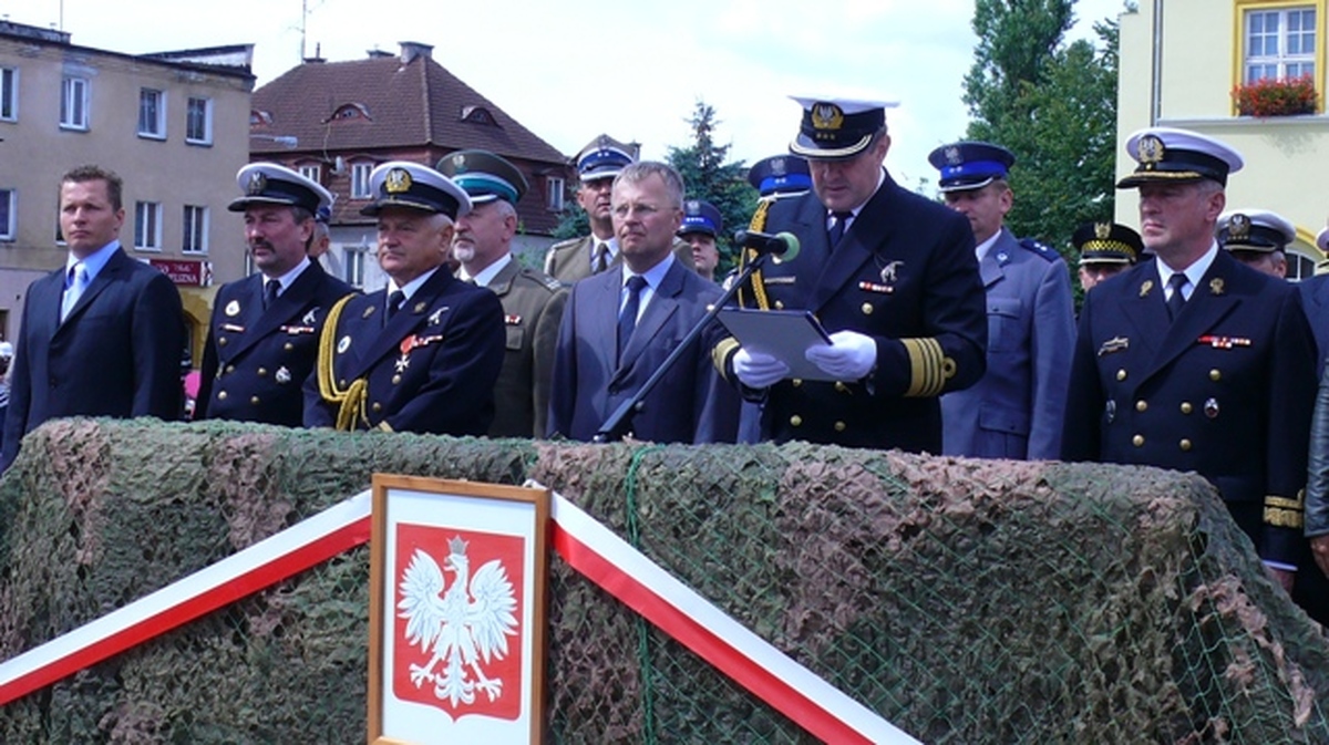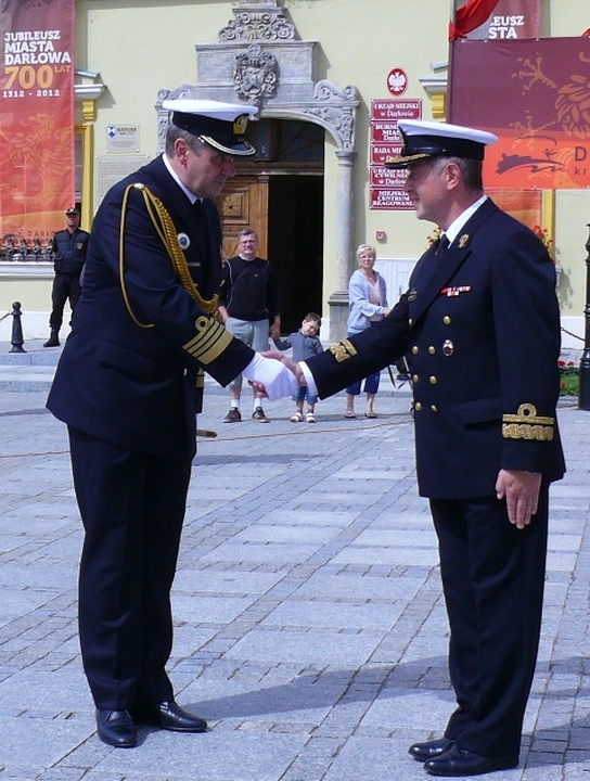 W uroczystości pięćdziesięciolecia lotnictwa morskiego w Darłowie oprócz marynarzy, lotników i służb technicznych udział wzięli: zastępca szefa szkolenia Marynarki Wojennej kontradmirał Stanisław Kania, burmistrz miasta Darłowo - Arkadiusz Klimowicz, kontradmirał pil. Zbigniew Smolarek, dowódca jednostki w Siemirowicach kmdr pil. Jarosław Andrychowski, byli dowódcy jednostek wojskowych lotnictwa morskiego, szefowie Policji, Straży Granicznej, Straży Pożarnej oraz rodziny wojskowych i liczna publiczność. Blasku ceremonii przekazania sztandaru dodawała słupska marszowa orkiestra „Reduta” w barwnych historycznych mundurach. Po defiladzie zrobiono na rynku pamiątkowe zdjęcie. Następnie wszyscy udali się nad morze na pokaz lotniczy.