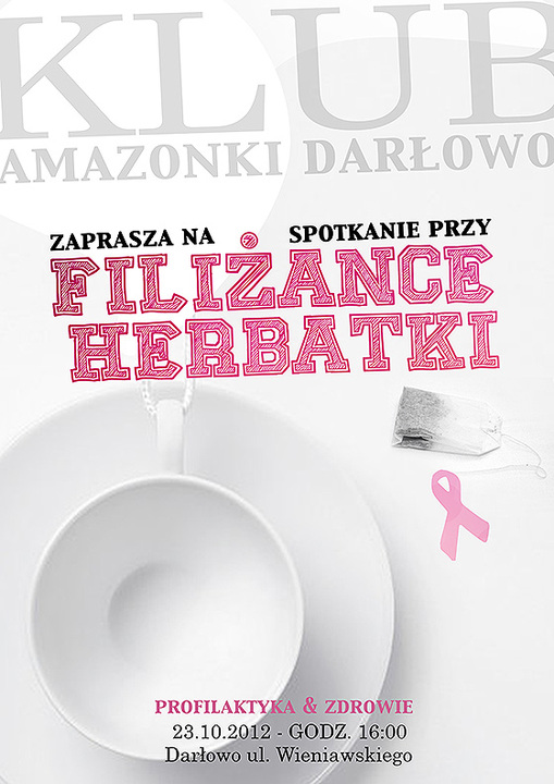 Darłowskie Amazonki serdecznie zapraszają wszystkie panie, mieszkanki Darłowa, okolic oraz powiatu sławieńskiego na spotkanie „przy herbatce", w trakcie którego będzie okazja ku temu, by porozmawiać o zdrowiu i profilaktyce.